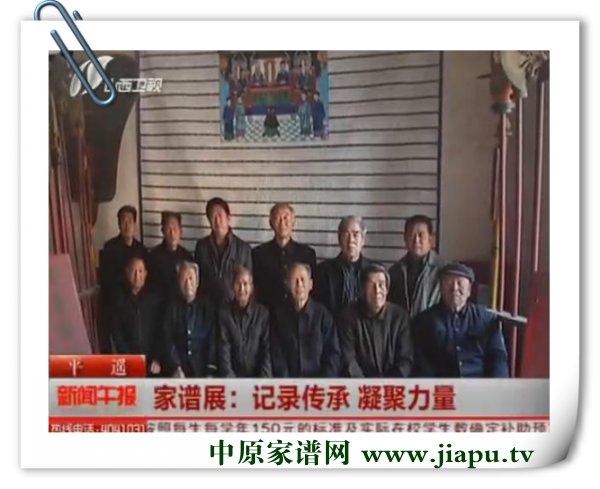 9月23日,山西卫视在午间新闻中播报了“山西民俗专家王进元在平遥推出家谱展活动”的情况,从报道中,我们了解到,为了举办这次活动,王进元先生花费了近一年的时间奔赴省内多地拍摄资料。据王进元介绍,家谱是很神圣的民俗文化,一般都由家族的长者收藏,只有到过年或者祭祖的时候,才会拿出来,而且家谱一般是不允许外姓人看的。所以,他在拍摄的时候,也曾经因此而耽搁不少时间,每次拍摄都要花费时间去当地老乡沟通,才能拍到有关图片。